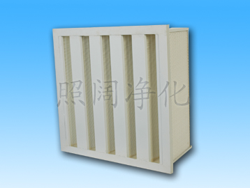 V-type medium effective filter is suitable used in big volume ventilation device, such as final stage filter, and front filter of high efficiency and ultra efficiency of ventilation system in power plant.