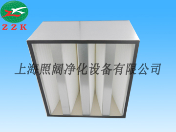 V型高效空气过滤器又名W型高效空气过滤器采用无隔板设计,滤芯采用全自动折景机进行喷胶折叠。 璃纤维滤纸或聚丙烯作为滤料;框架采用阳极处理铝型材框,镀锌框或塑料框,护网为喷塑钢网或阳极处理铝网;很好的产品设计可以灵活地对产品进行安装、更换及升级。有效面积大,阻力低,使用寿命长,每个过滤器都经过严格检测;可制作F6-U14间各种效率。
