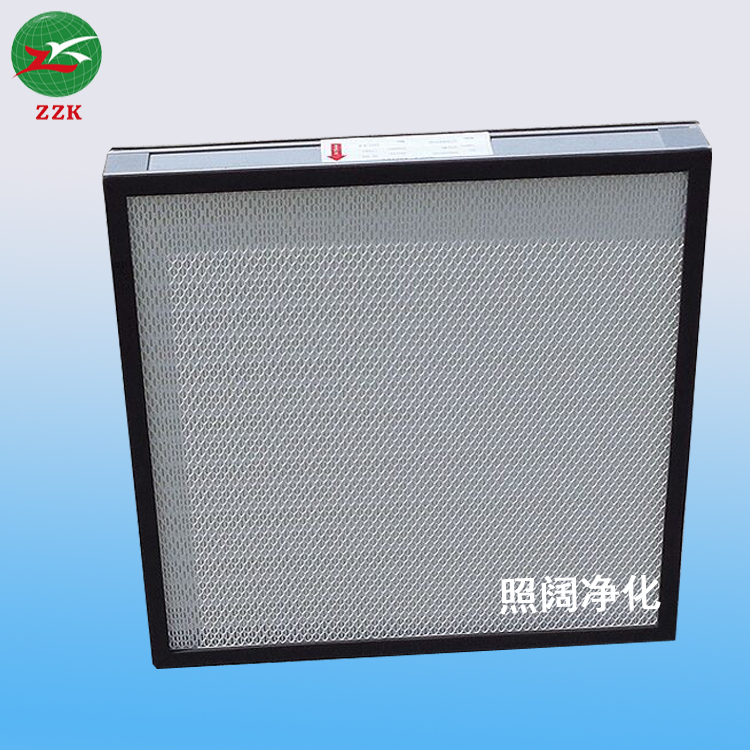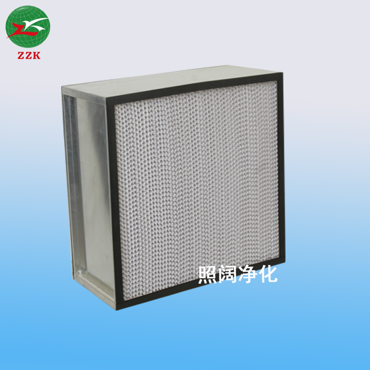 二、有隔板高效过滤器是用超细纤维作滤料、优质牛皮纸热滚压成形或采用胶版纸、铝铂作分隔板,与木框或铝合金框胶和而成,具有过滤效率高,阻力低,风量大的优点。