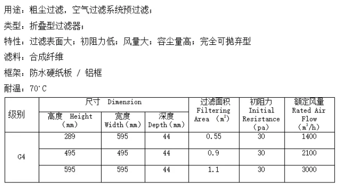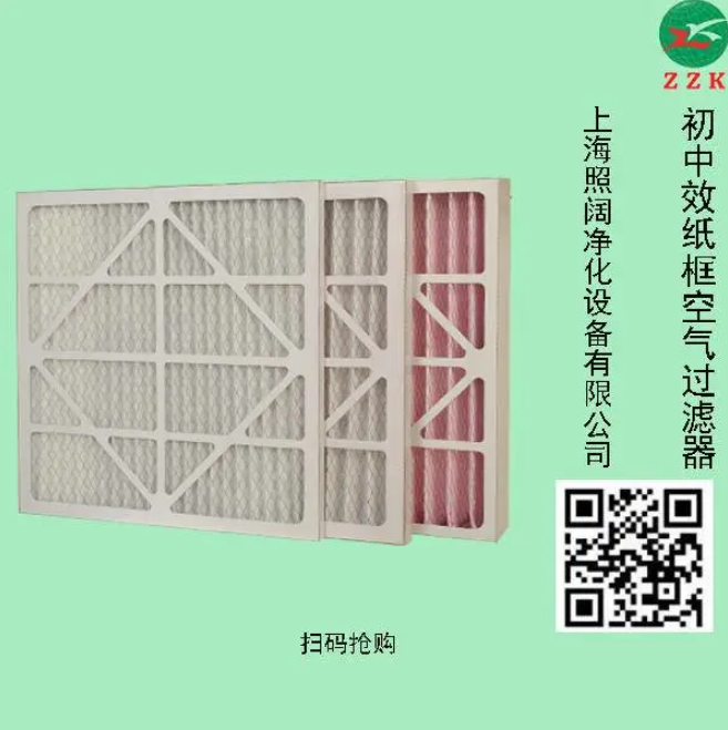 纸框初效空气过滤器适用于空调系统的初级过滤。外框采用防潮原浆木纤维纸板制成,高强度,不易变形。它在正常的操作环境下不会变形、破裂、扭曲。此外框前后以对角线固定滤材。滤材与外框紧密的黏合外框防止任何气漏产生。初效过滤器采用无纺布、玻璃纤维等为滤料,以折叠形式装入高强度摸切硬纸板内,迎风面积增大,流入的空气中的尘埃粒子被过滤材料有效阻挡褶与褶之间,洁净空气从另一面均匀流出。