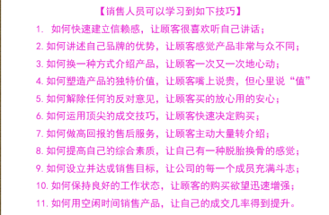 包括对客户心理,产品专业知识,社会常识,表达能力,沟通能力的掌控运用。