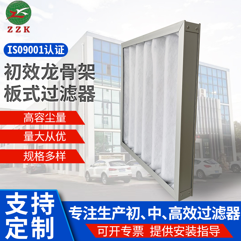 ZZK的过滤效率有G3G4两种,对应计重法90%和比色法40%。这种效率的过滤器,用于空调与通风系统的初级过滤,也适用于只需一级过滤的简单空调和通风系统。